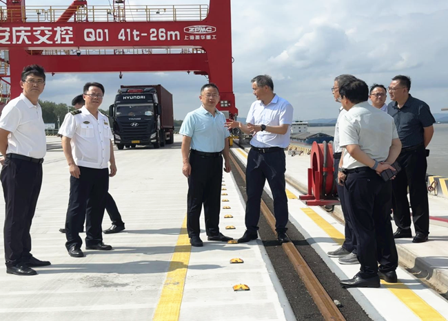 會(huì)前,與會(huì)人員深入皖河新港一期項(xiàng)目現(xiàn)場(chǎng),實(shí)地調(diào)研港口基礎(chǔ)設(shè)施建設(shè)進(jìn)展情況,重點(diǎn)查看了圍網(wǎng)封閉、進(jìn)出道路等關(guān)鍵部位的建設(shè)情況。