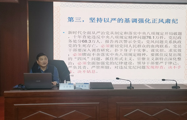 余必龍以《從扣好廉潔從政的“第一??圩印弊銎稹窞轭},圍繞黨的二十大全面從嚴(yán)治黨戰(zhàn)略要求,進(jìn)一步深化八項(xiàng)規(guī)定實(shí)施細(xì)則,引入典型案例進(jìn)行剖析,指出黨政機(jī)關(guān)國(guó)企工作人員不可觸碰的紅色底線,以案釋法講述“勿以惡小而為之、勿以善小而不為”,提升干部職工對(duì)廉潔價(jià)值理念的認(rèn)同感,警醒全體員工牢記紀(jì)律規(guī)矩,知敬畏、存戒懼、守底線,在思想上、工作上、生活上、學(xué)習(xí)上、監(jiān)督上做到廉潔自律,進(jìn)一步提高政治站位,從嚴(yán)落實(shí)中央八項(xiàng)規(guī)定精神, 增強(qiáng)政治自覺,持之以恒正風(fēng)肅紀(jì),推動(dòng)廉政教育走深走實(shí)、入腦入心,不斷擰緊全員廉潔思想“總開關(guān)”,打造風(fēng)清氣正的廉潔從業(yè)環(huán)境。